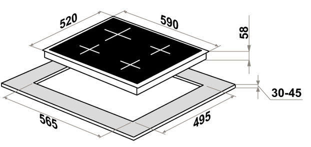 поверхность варочная стеклокерамическая индукционная, 60 см, черный