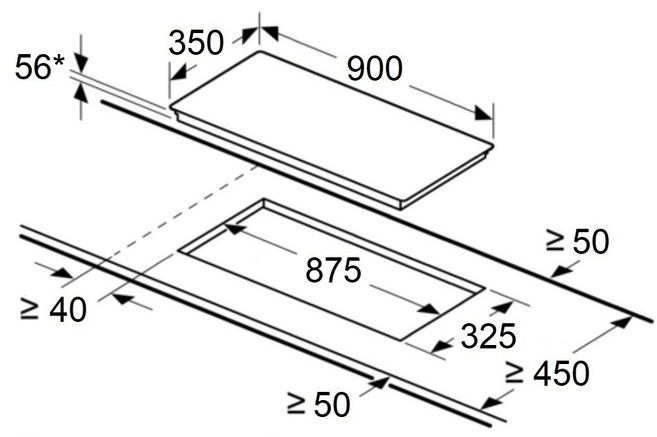 Характер огранки фаски на внешней стороне варочной панели. Металлические рамки предотвращают забивание монтажных швов крошками и пылью.