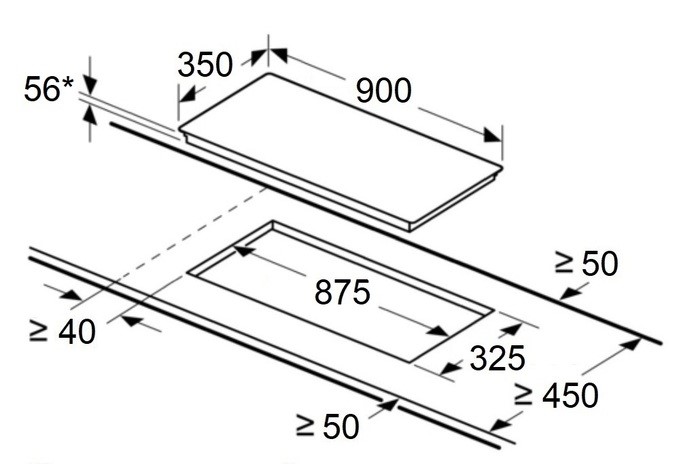 Характер огранки фаски на внешней стороне варочной панели. Металлические рамки предотвращают забивание монтажных швов крошками и пылью.