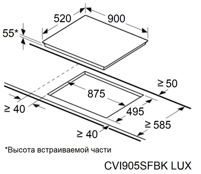 поверхность варочная стеклокерамическая индукционная, 90 см, черный