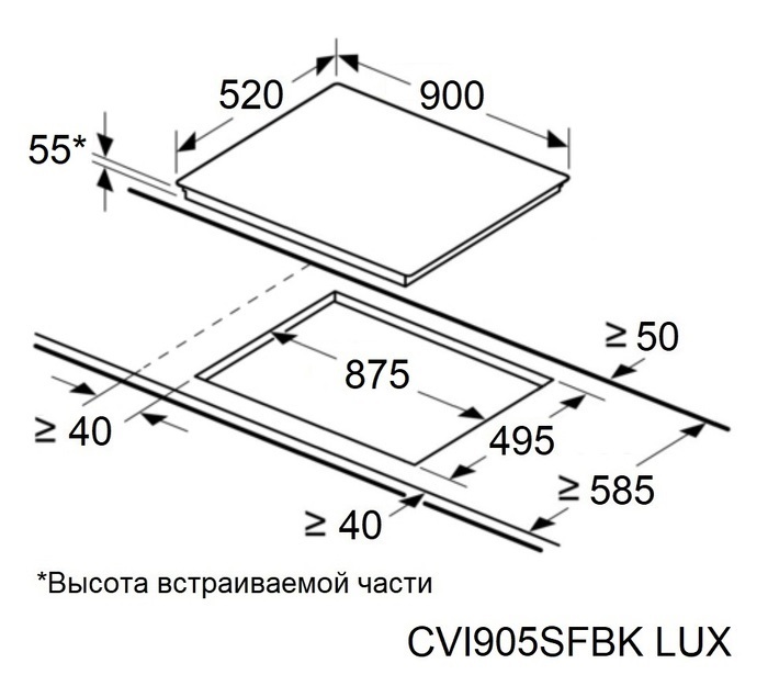 поверхность варочная стеклокерамическая индукционная, 90 см, черный, без рамки