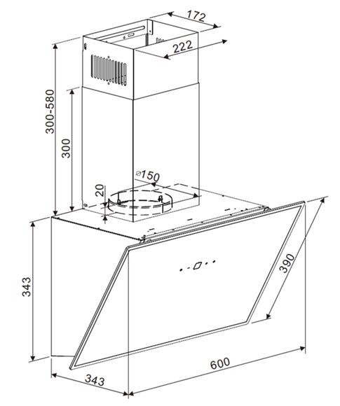вытяжка наклонная, 60 см, 850 м3/ч, белый