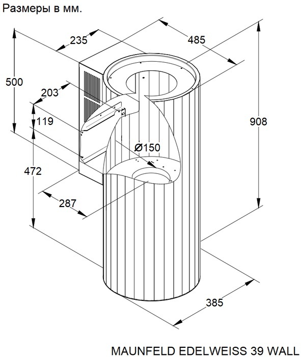 Maunfeld EDELWEISS 39 WALL Black/Anthracite Вытяжка пристенная цилиндрическая