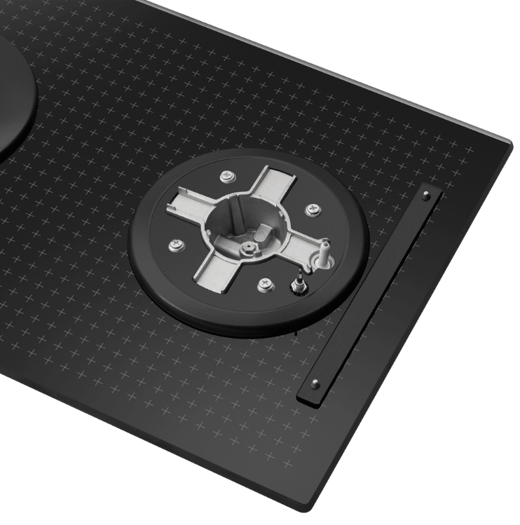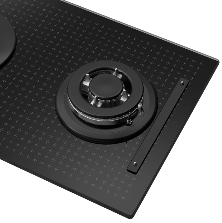 поверхность газовая, 30 см, газ на стекле, 2 конфорки, чугунная решетка, черный
