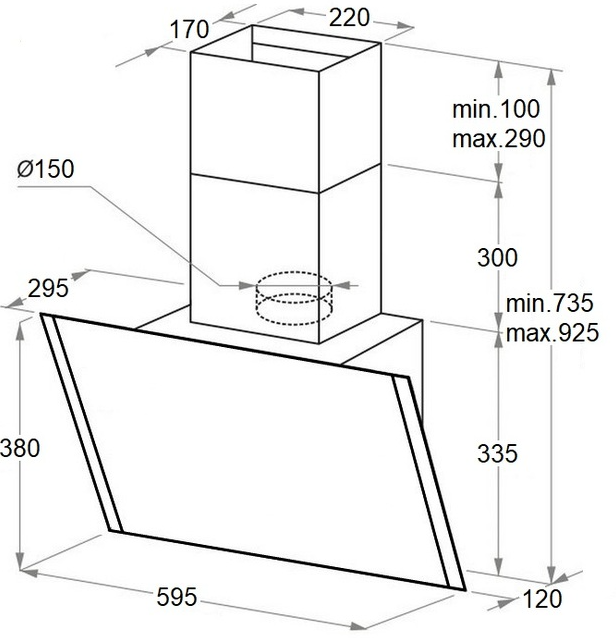 вытяжка наклонная, 60 см, 1150 м3/ч, черный