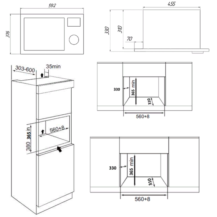 микроволновая печь встраиваемая, 20 л, 59,5х33х37,6 см, белый