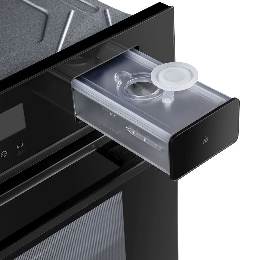 Функция позволяет использовать духовой шкаф, как полноценную пароварку. Вода добавляется в специальную емкость и преобразуется в пар.