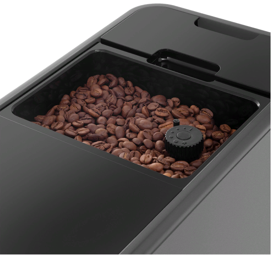 Устройство для перемалывания кофе уже встроено в прибор. Достаточно засыпать зерна в емкость и наслаждаться свежемолотым кофе.