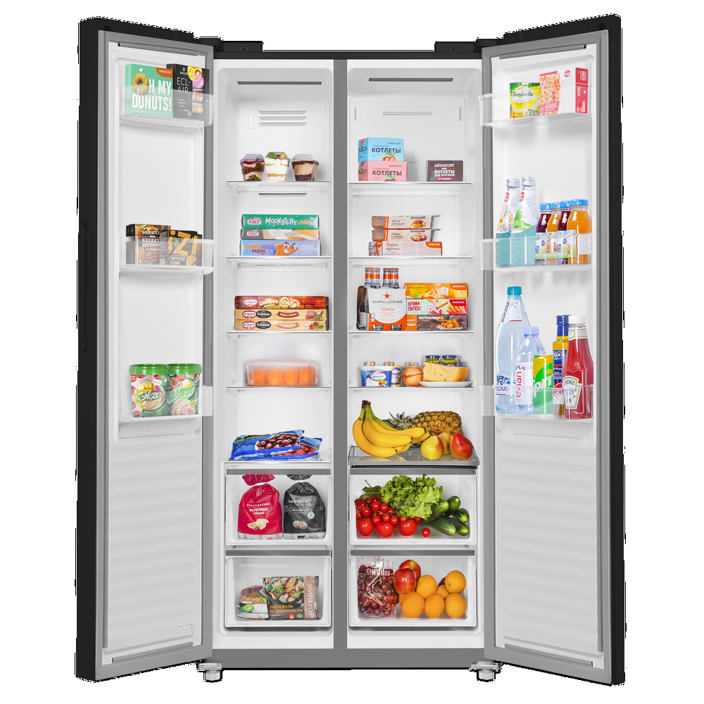 холодильник-морозильник Side-by-Side отдельностоящий, 606 л, класс энергопотребления А+, NoFrost, 96х63,5х191,2 см, черный