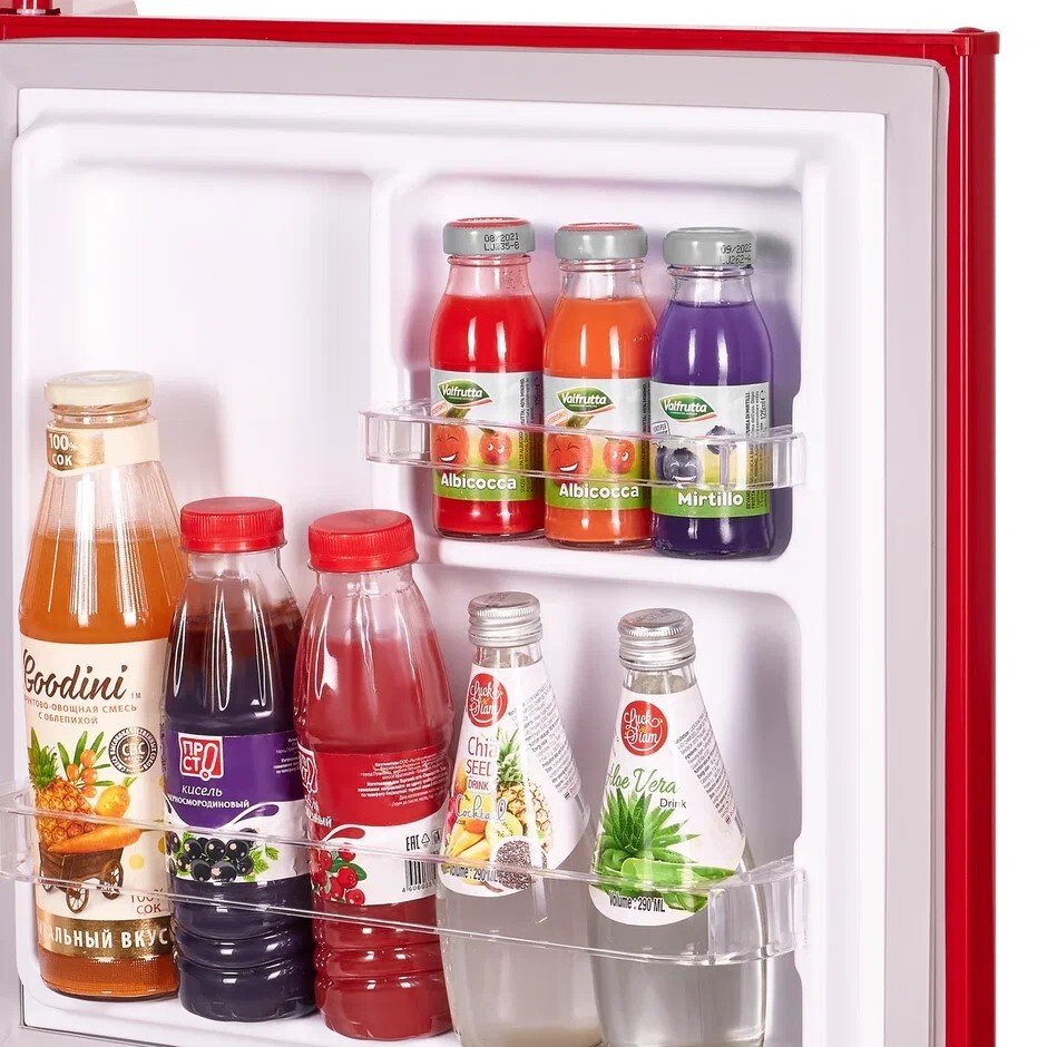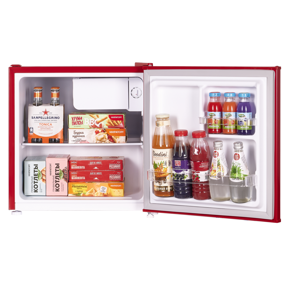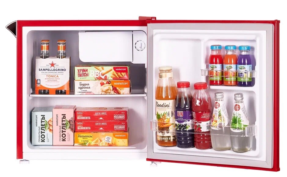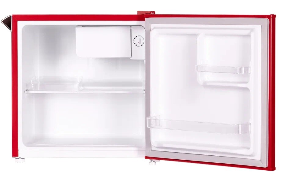 холодильник однокамерный отдельностоящий, 46 л, класс энергопотребления А+, ручная система размораживания, 49,5х44,5х49,5 см, красный