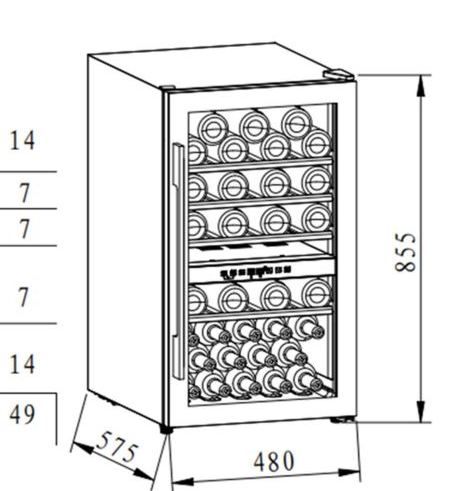винный шкаф отдельностоящий, 116 л, 48х61,8х85,8 см, черный