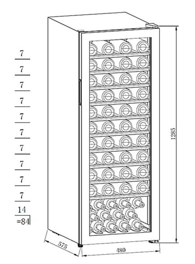 винный шкаф отдельностоящий, 201 л, 48х57,5х128,5 см, черный