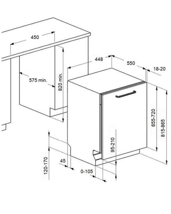 машина посудомоечная встраиваемая, 45 см, 10 комплектов, белый