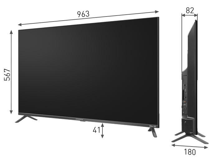 телевизор, 43 дюйма, UHD, 3840 x 2160, черный