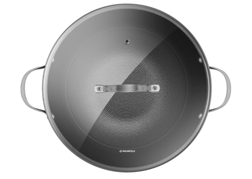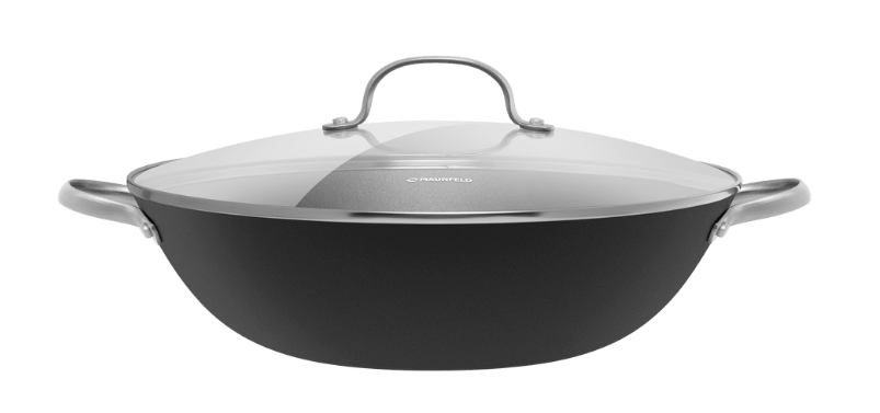 сковорода-вок из облегченного чугуна со стеклянной крышкой, 32 см, черный