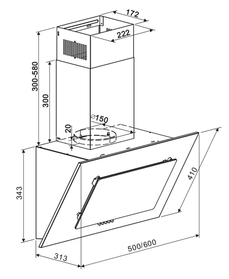 вытяжка наклонная, 60 см, 700 м3/ч, черный
