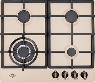 поверхность газовая, 60 см, газ на эмали, 4 конфорки, чугунные решетки, слоновая кость