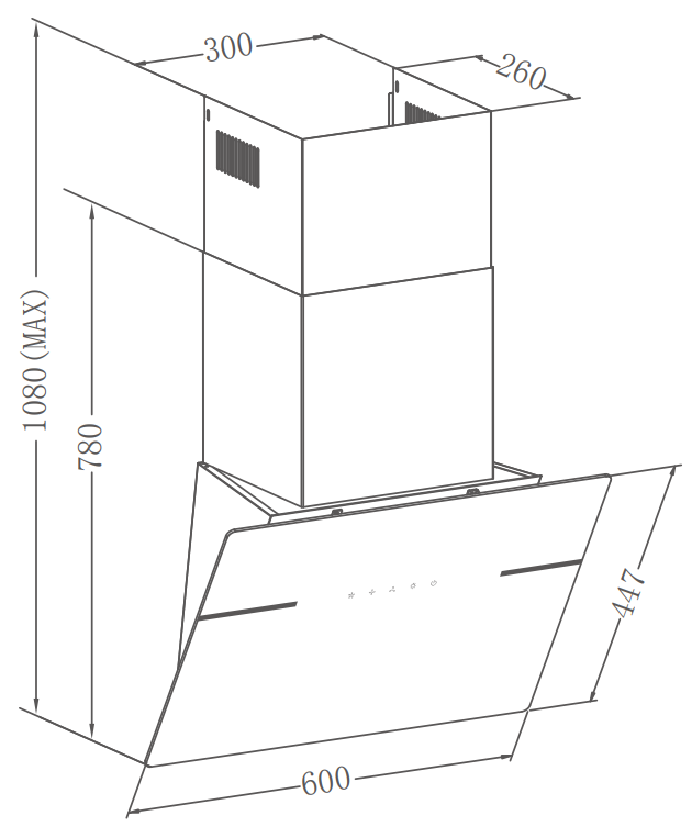вытяжка наклонная, 60 см, 1100 м3/ч, черный