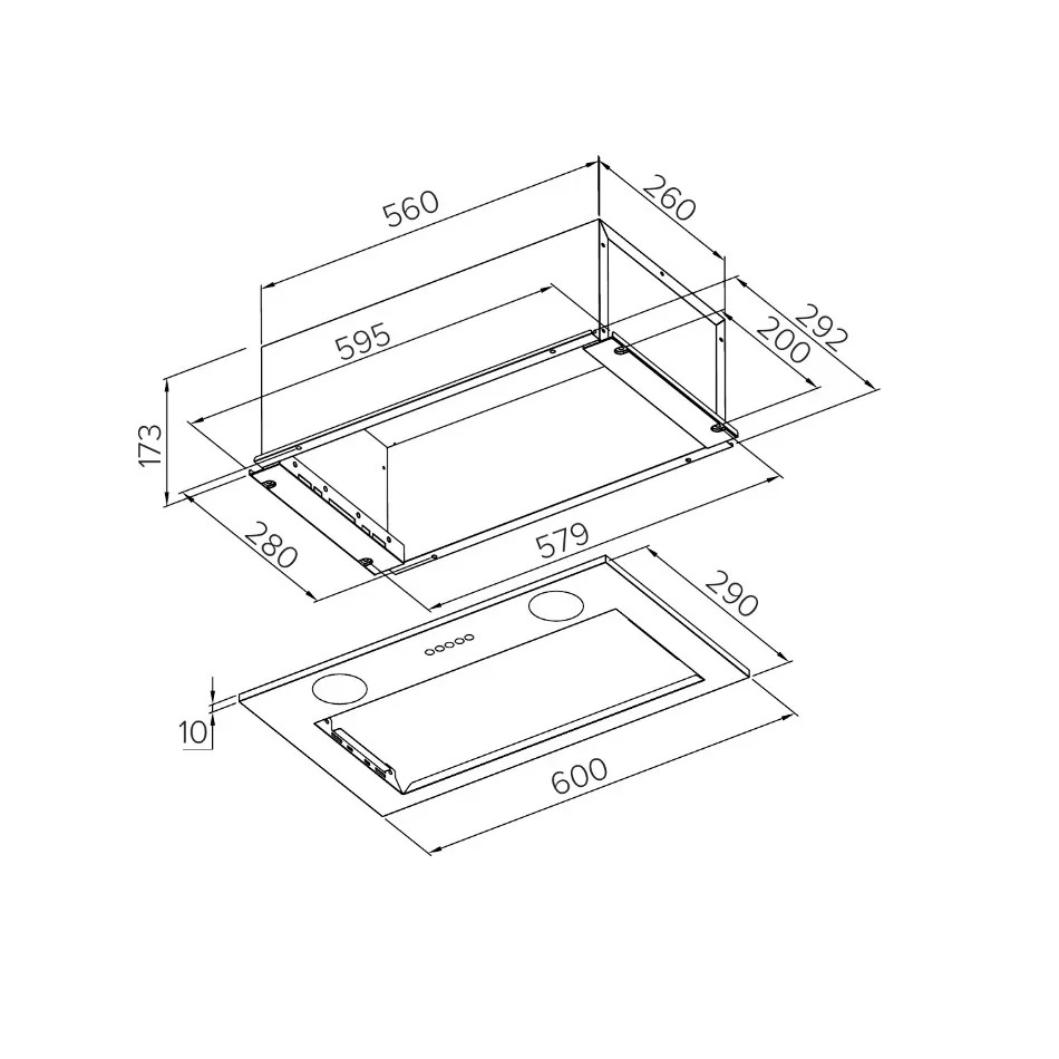 вытяжка встраиваемая в подвесной шкаф, 60 см, 900 м3/ч, нержавеющая сталь