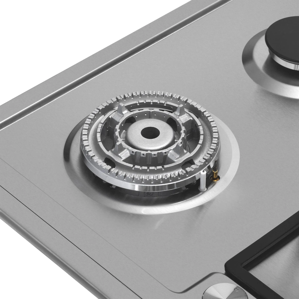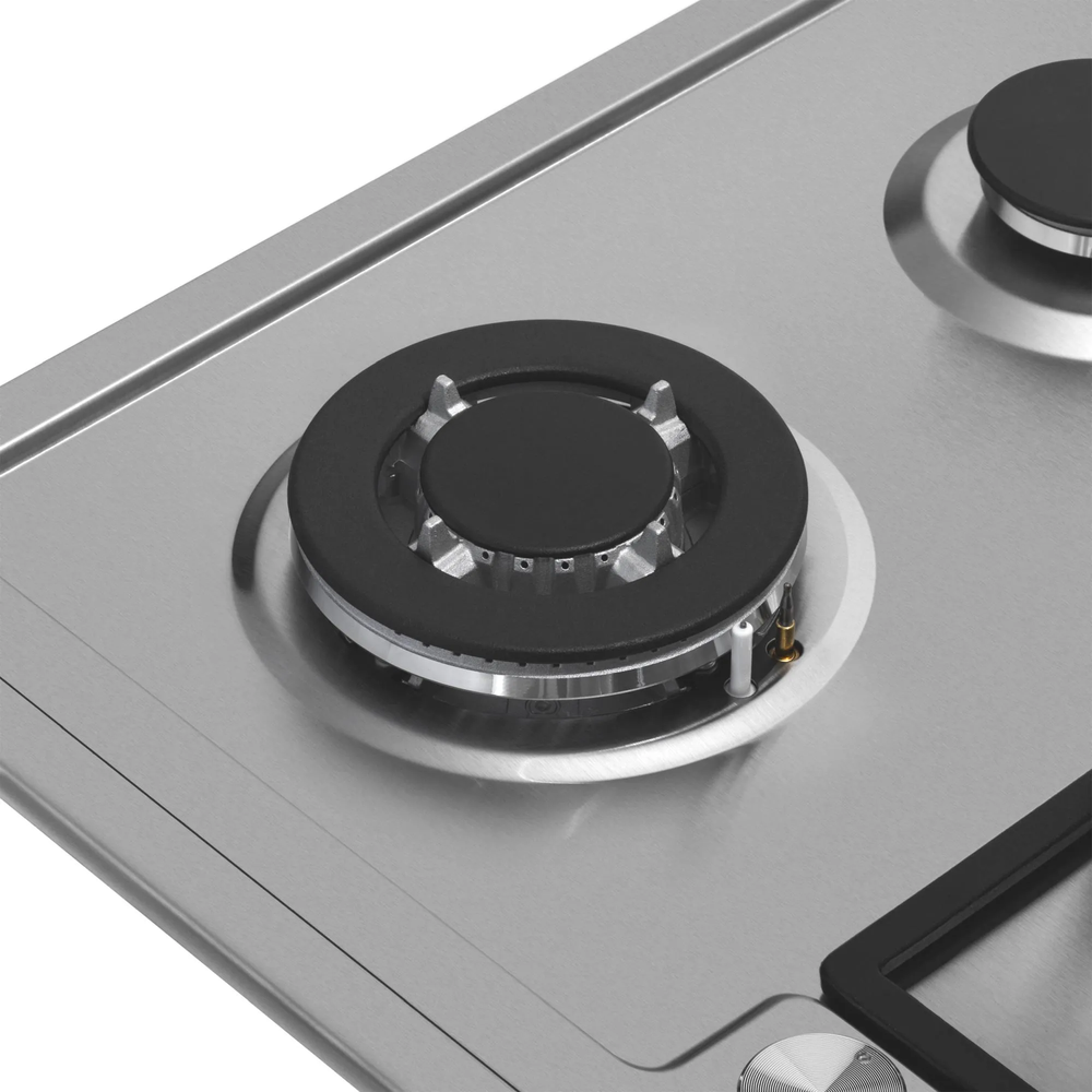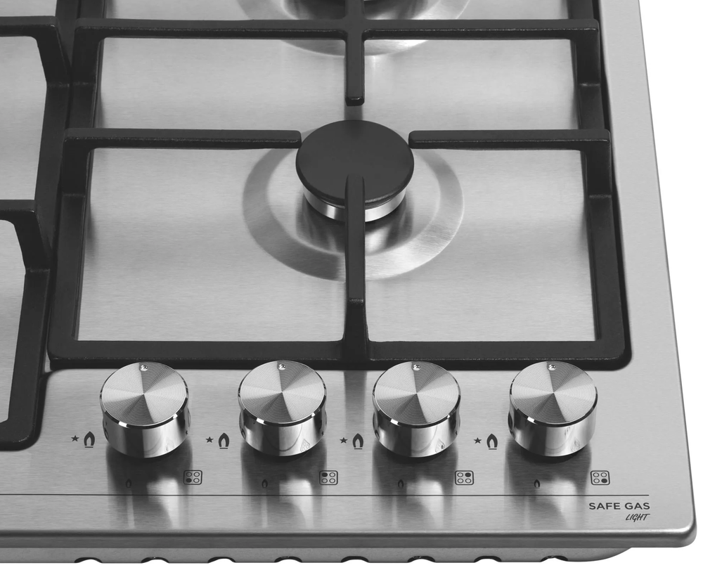 поверхность газовая, 60 см, газ на металле, 4 конфорки, решетки чугунные, нержавеющая сталь
