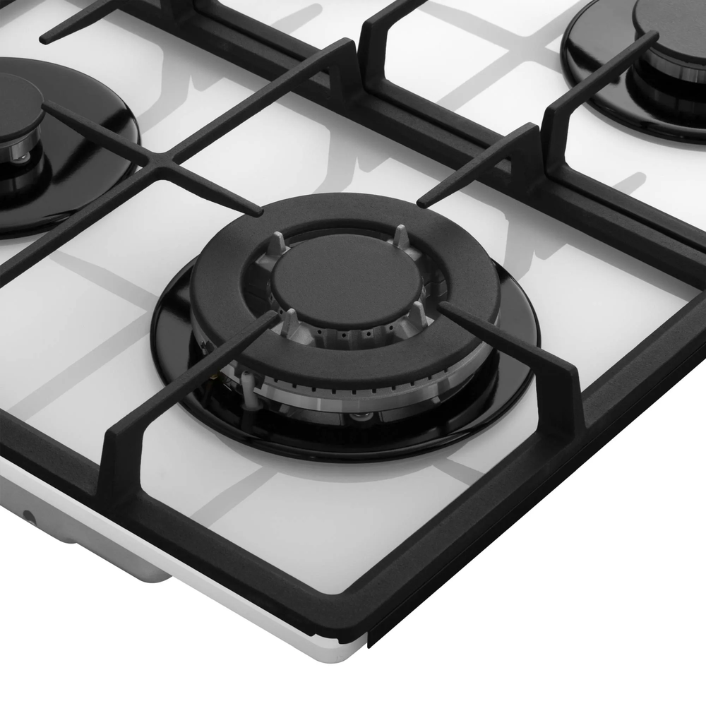 поверхность газовая, 60 см, газ на стекле, 4 конфорки, решетки чугунные, белый
