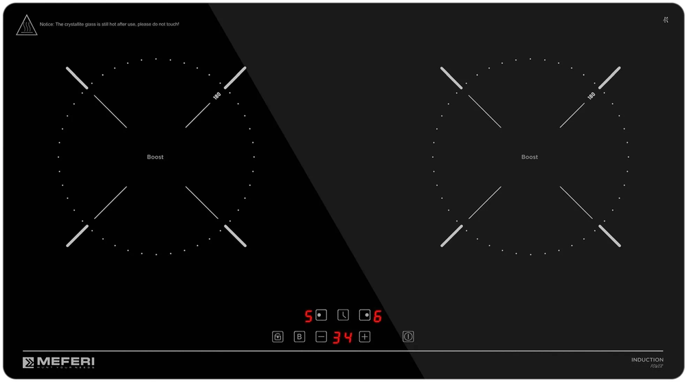 Возможность значительно повысить мощность конфорки на несколько минут (от 2 до 10). Скорость нагрева увеличивается примерно на 30%.
