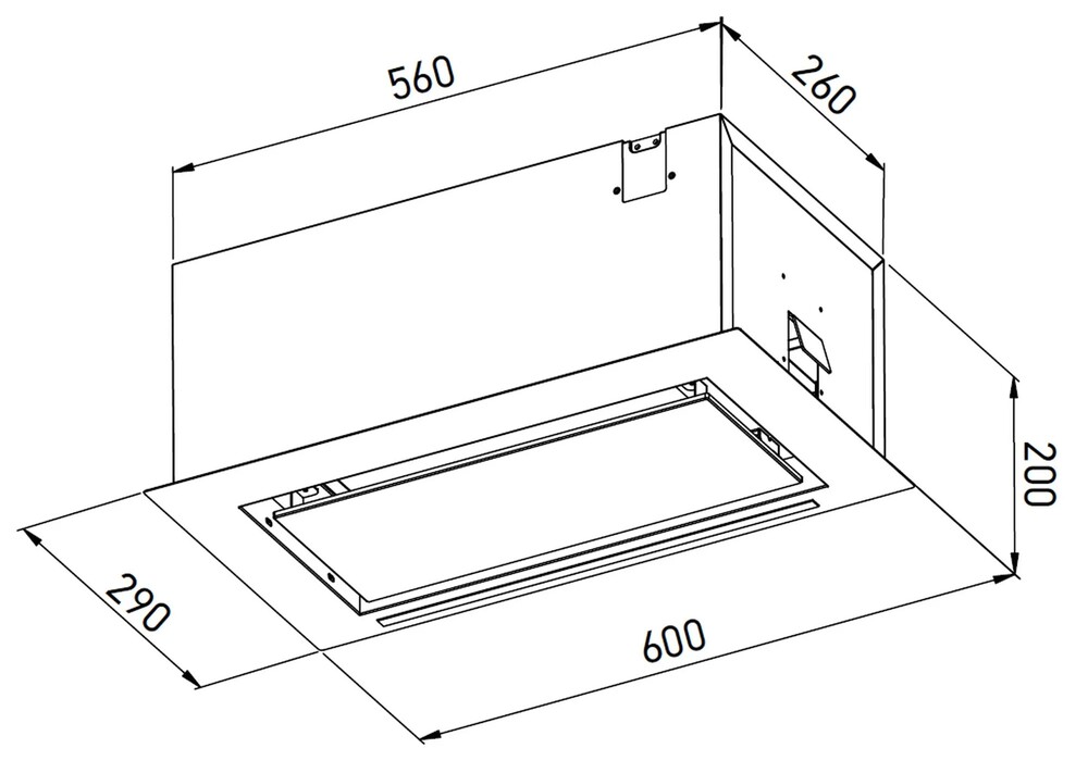 вытяжка встраиваемая в подвесной шкаф, 60 см, 900 м3/ч, черный