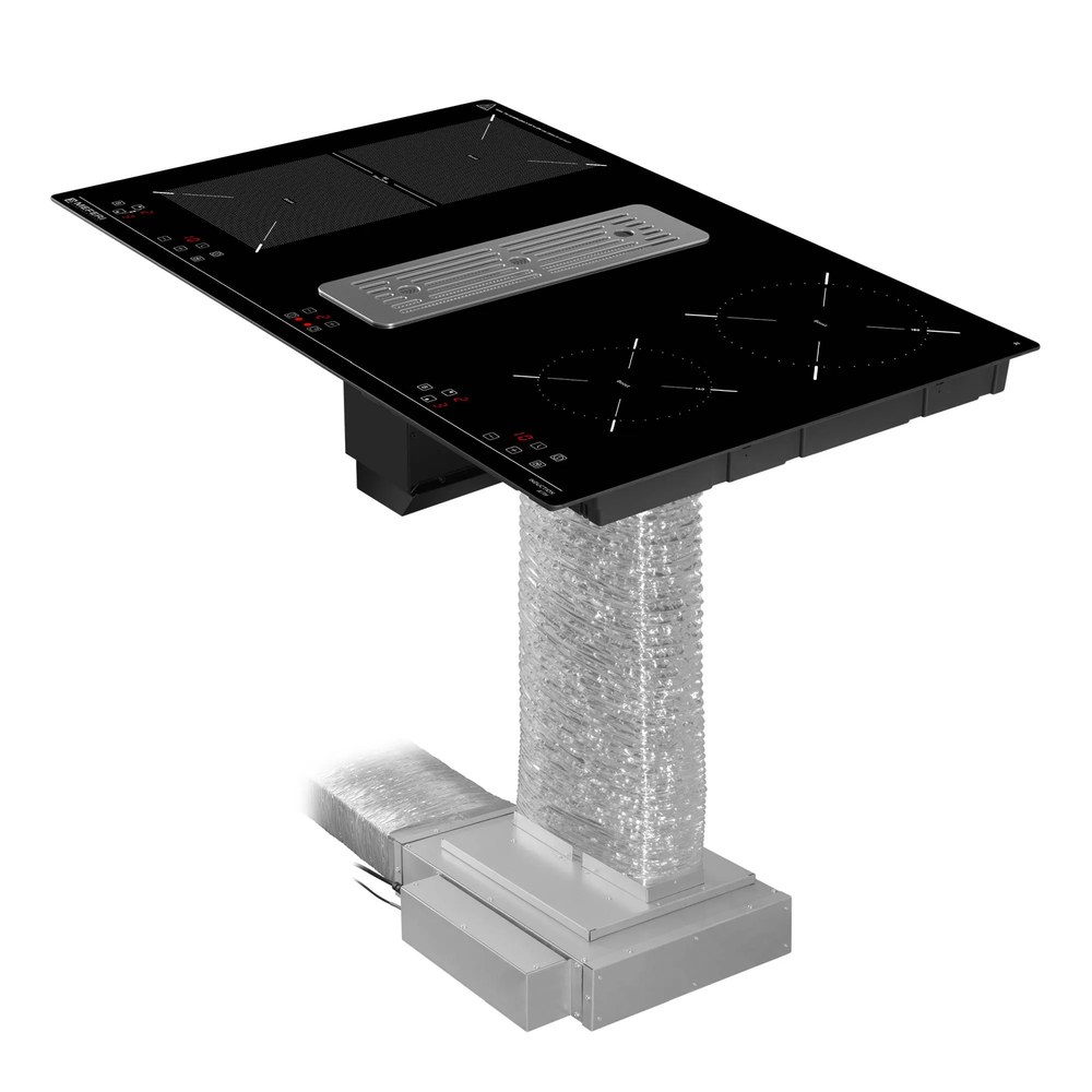 поверхность варочная стеклокерамическая индукционная с встроенной вытяжкой, 80 см, черный