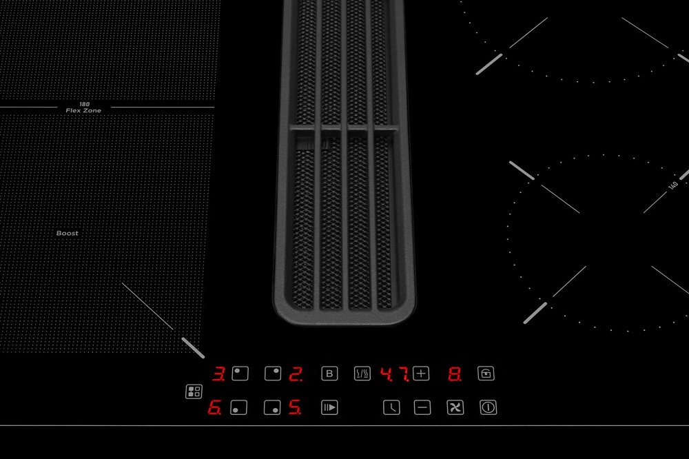 поверхность варочная стеклокерамическая индукционная с встроенной вытяжкой, 60 см, черный
