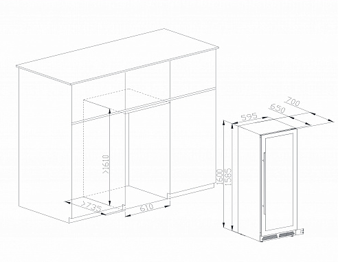 винный шкаф встраиваемый/отдельностоящий, 375 л, 59,5х70х160 см, черный