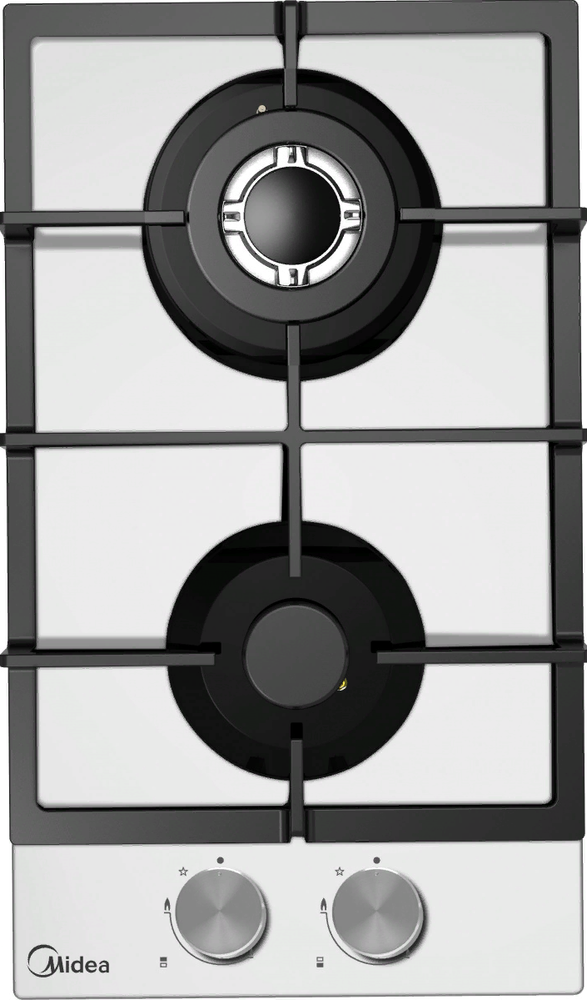 поверхность газовая, 30 см, газ на стекле, 2 конфорки, решетки чугунные, белый