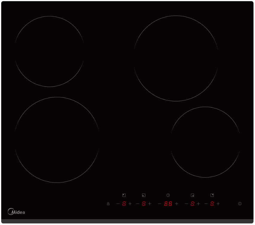 Расположение панели управления варочной поверхностью относительно конфорок. Если панель расположена сбоку, она будет справа.