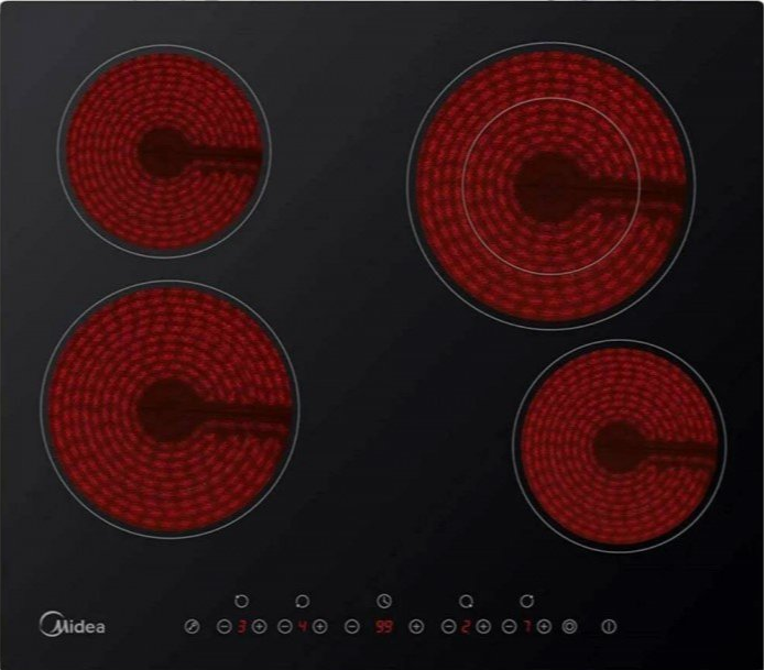 Расположение панели управления варочной поверхностью относительно конфорок. Если панель расположена сбоку, она будет справа.
