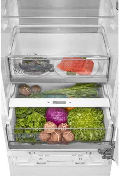 В зоне свежести температура держится на уровне 0°С, так продукты дольше остаются свежими. Подходит для свежего мяса, рыбы, фруктов, овощей.