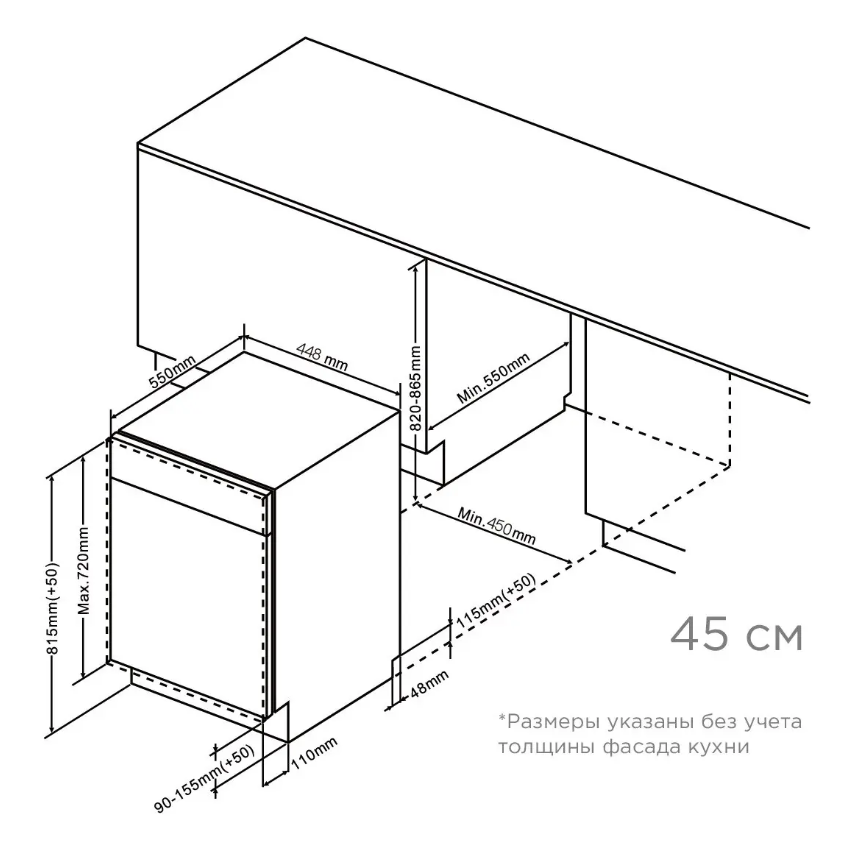машина посудомоечная встраиваемая, 45 см, 10 комплектов