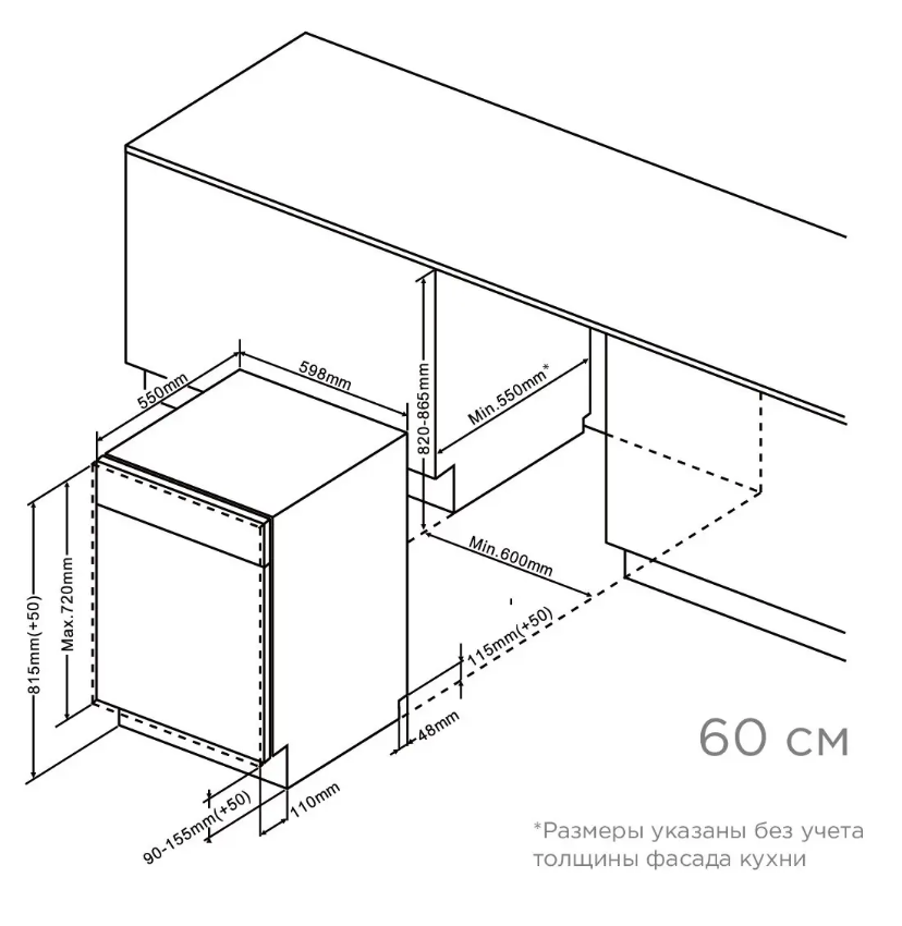 машина посудомоечная встраиваемая, 60 см, 14 комплектов