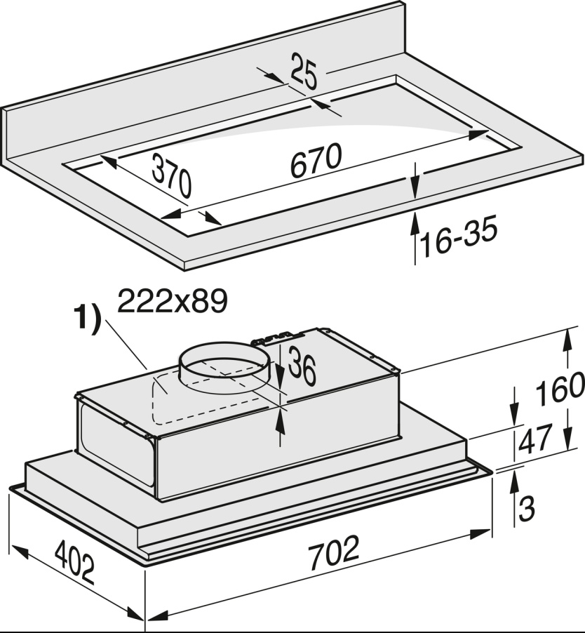 вытяжка встраиваемая в подвесной шкаф, 58 см, 585 м3/час, серебристый
