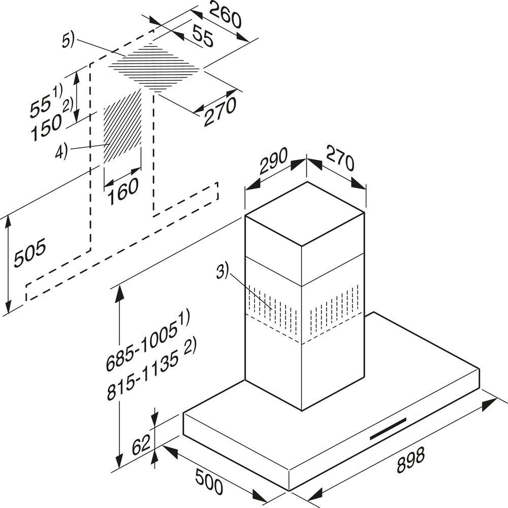 вытяжка пристенная, 90 см, 640 м3/час, нержавеющая сталь