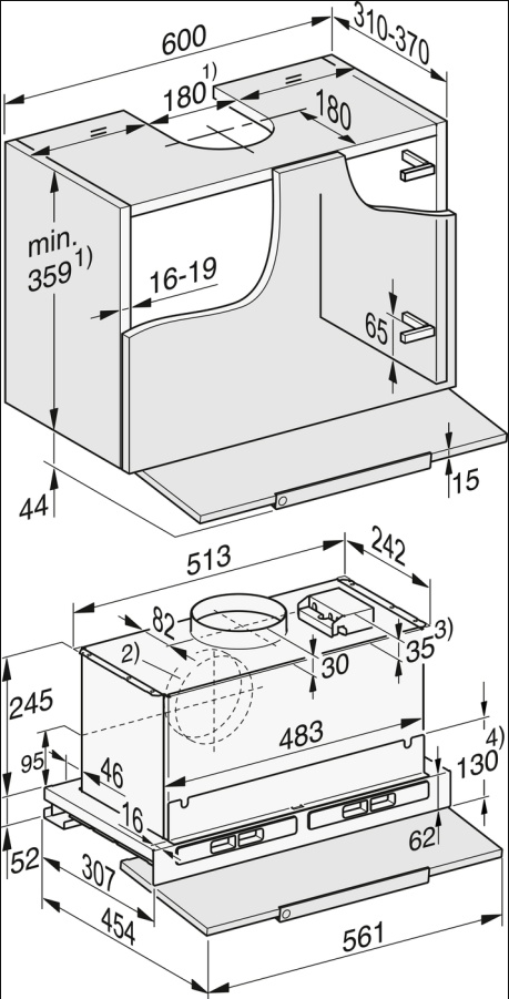 вытяжка встраиваемая телескопическая, 60 см, 810 м3/час, нержавеющая сталь