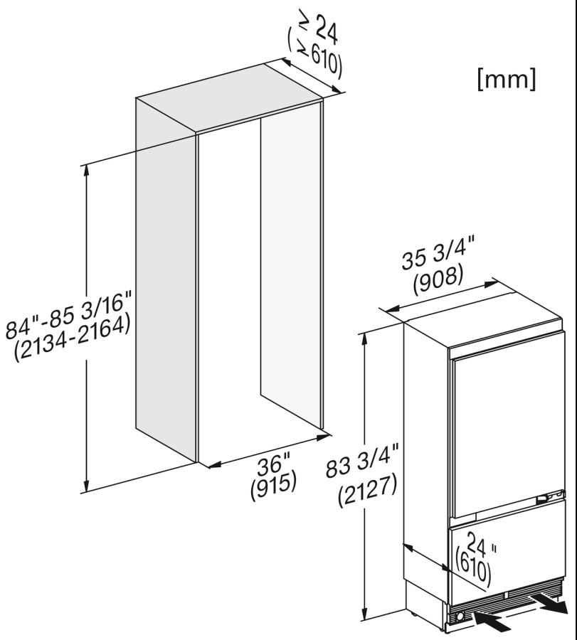 холодильник-морозильник встраиваемый, 505 л, класс энергопотребления A++, No Frost, 90,8х61х212,7 см