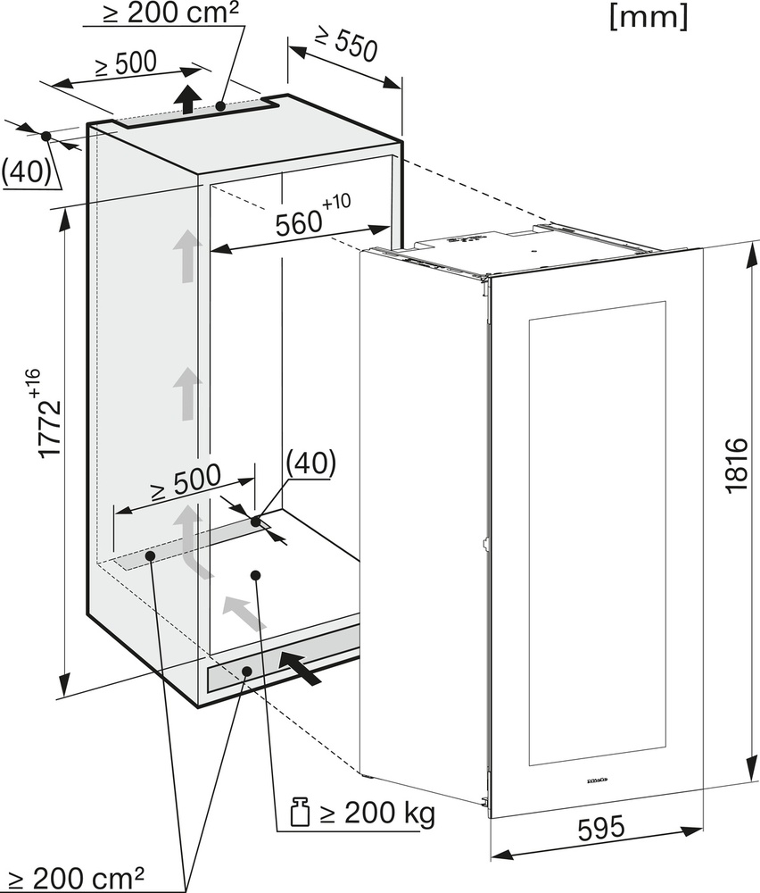 винный шкаф встраиваемый, 271 л, 59,5х57,2х176,9 см, черный