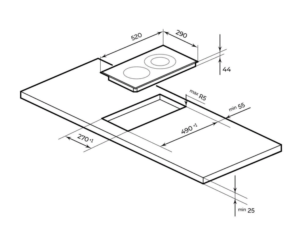 поверхность варочная стеклокерамическая, 30 см, черный, скошенные края