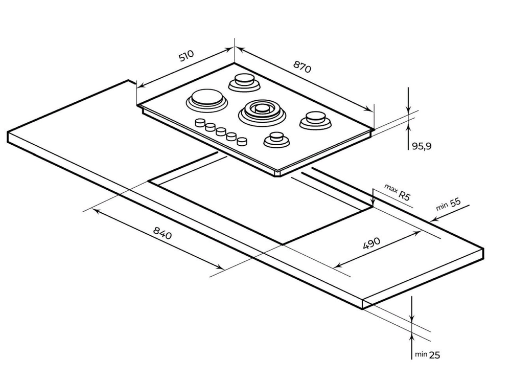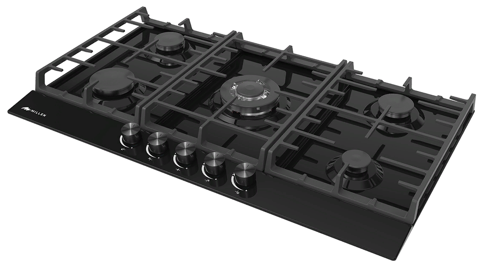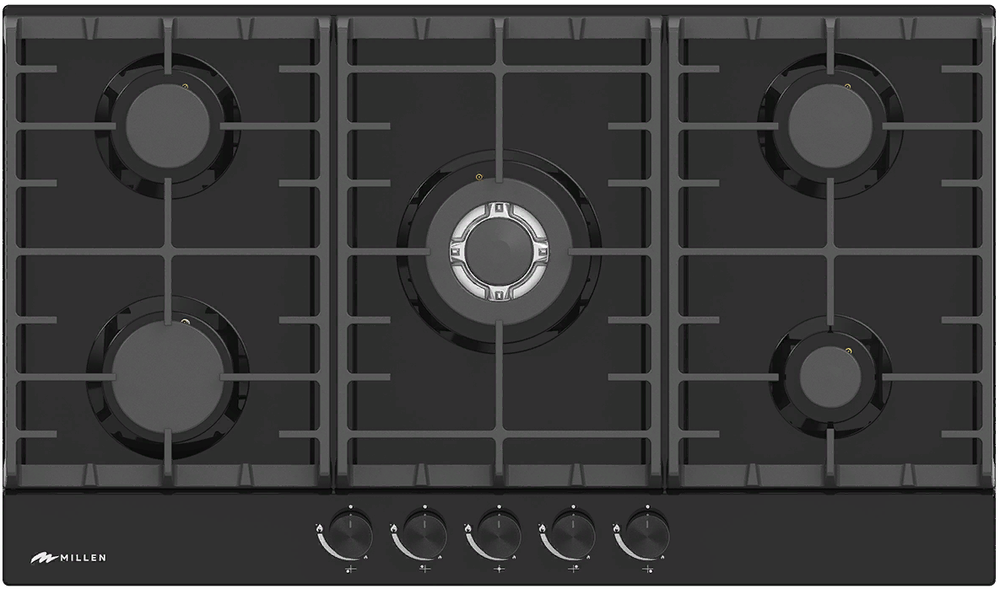 поверхность газовая, 87 см, газ на эмали, 5 конфорок, решетки чугунные, черный