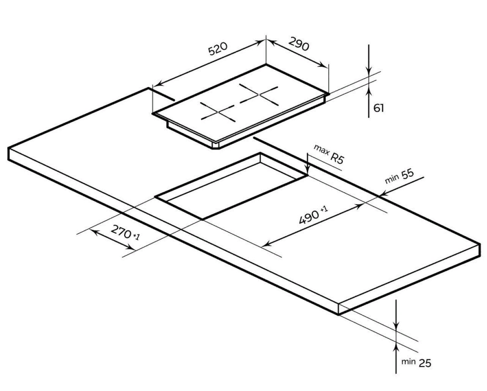 поверхность варочная стеклокерамическая индукционная, 30 см, черный, скошенные края