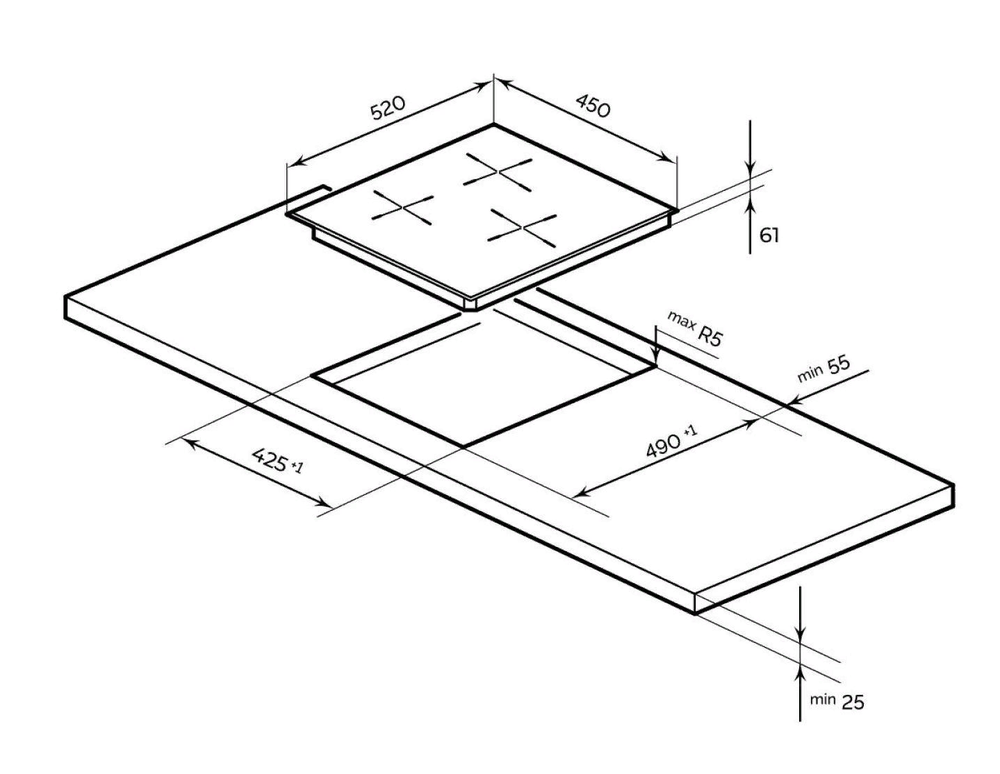 поверхность варочная стеклокерамическая индукционная, 45 см, черный, скошенные края