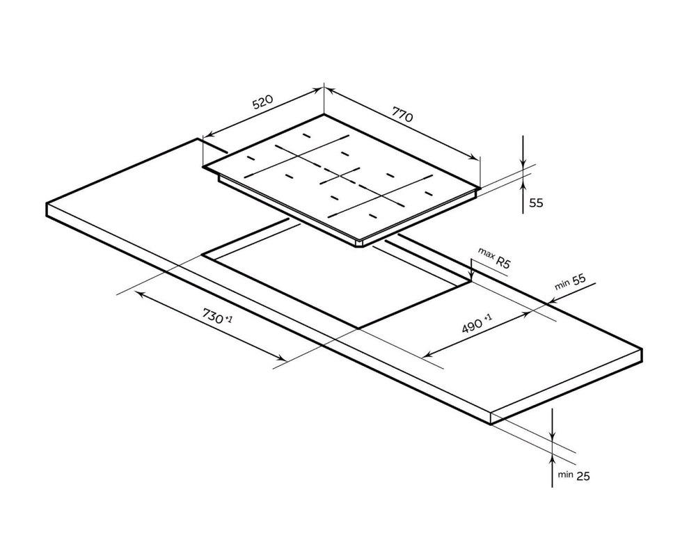 поверхность варочная стеклокерамическая индукционная, 77 см, черный, скошенные края