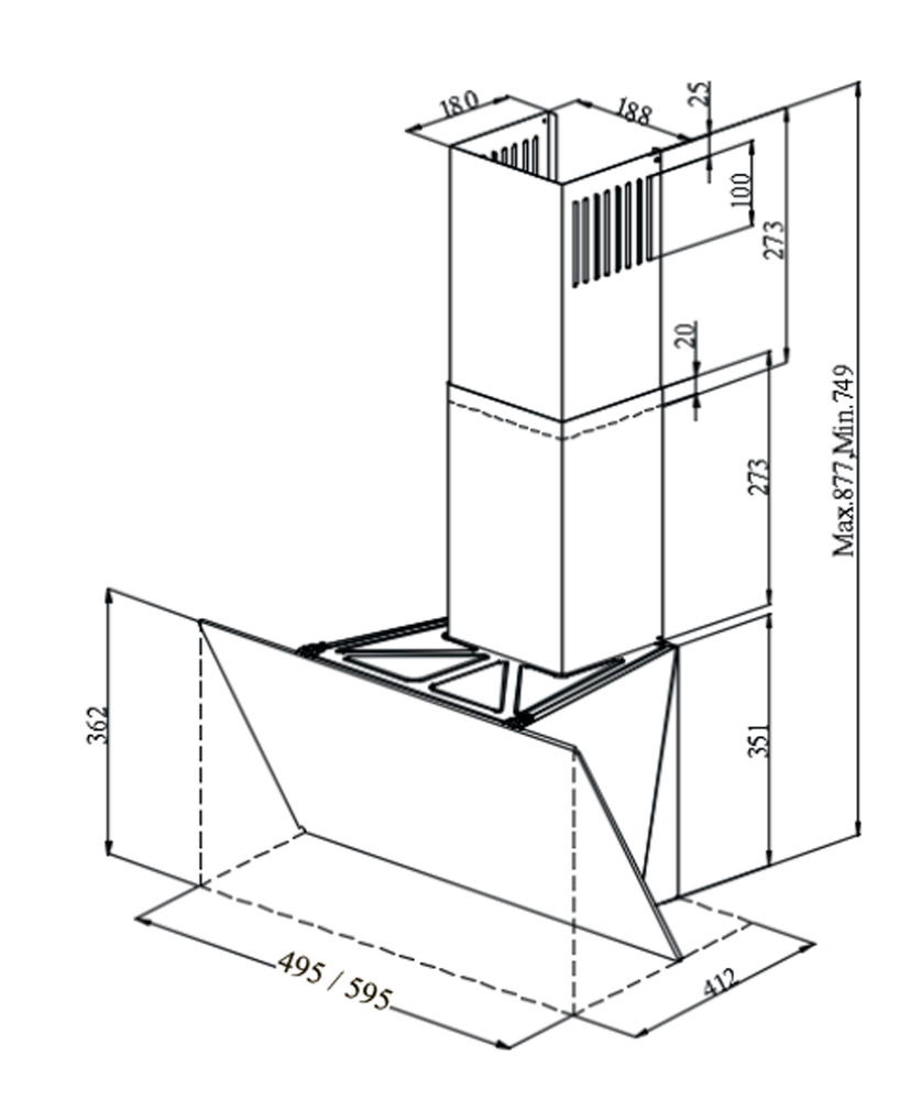 вытяжка наклонная, 50 см, 700 м3/ч, черный