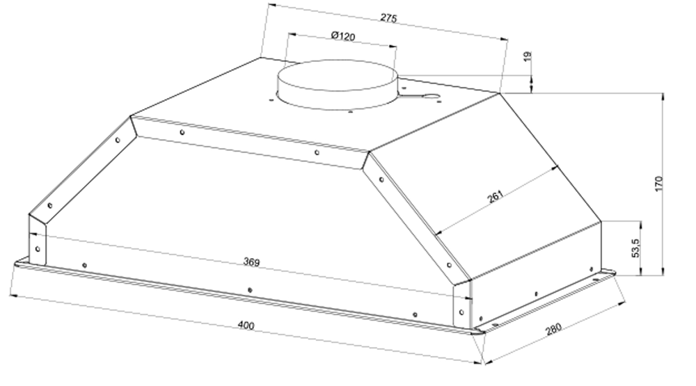 вытяжка встраиваемая в подвесной шкаф, 40 см, 500 м3/ч, черный