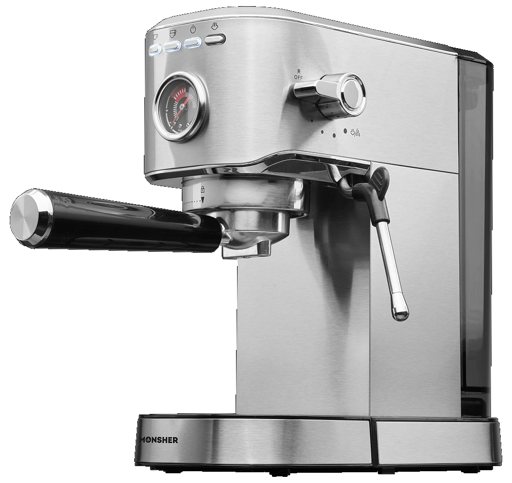 Кофемашина Monsher MC 500 — это элегантная рожковая кофеварка серебристого цвета, которая станет стильным и незаменимым помощником на вашей кухне. С механическим управлением, она проста и удобна в использовании, а мощность в 1350 Вт обеспечивает быстрое и качественное приготовление вашего любимого кофе. Давление помпы в 15 бар гарантирует насыщенный и ароматный напиток.