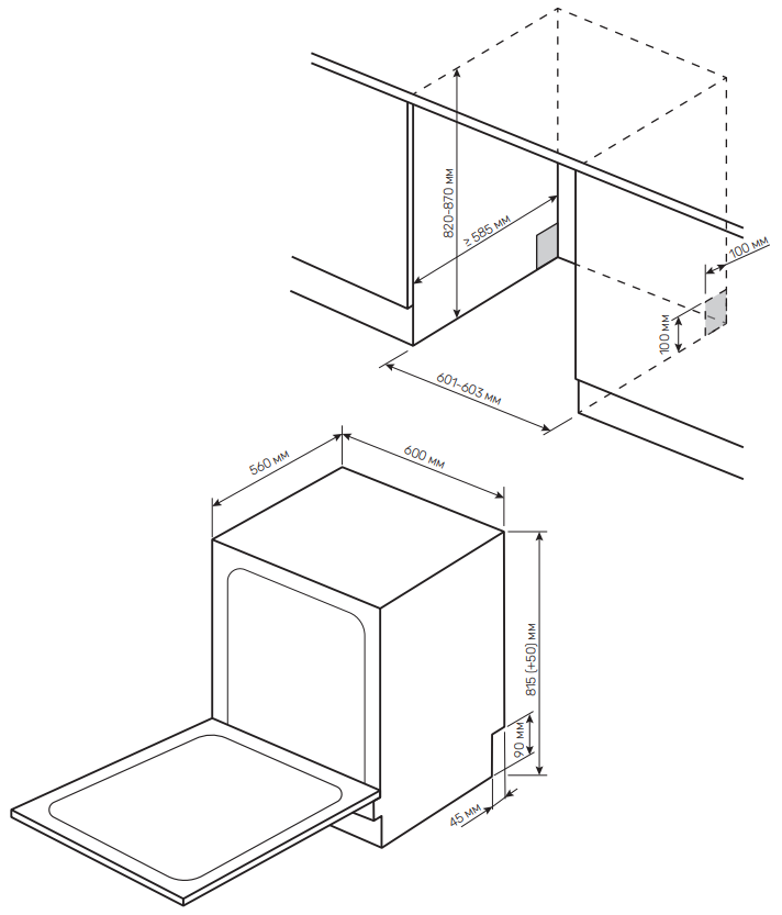 Ширина корпуса электроприбора. Особенно важно точно знать точную допустимую ширину для встраиваемой техники.